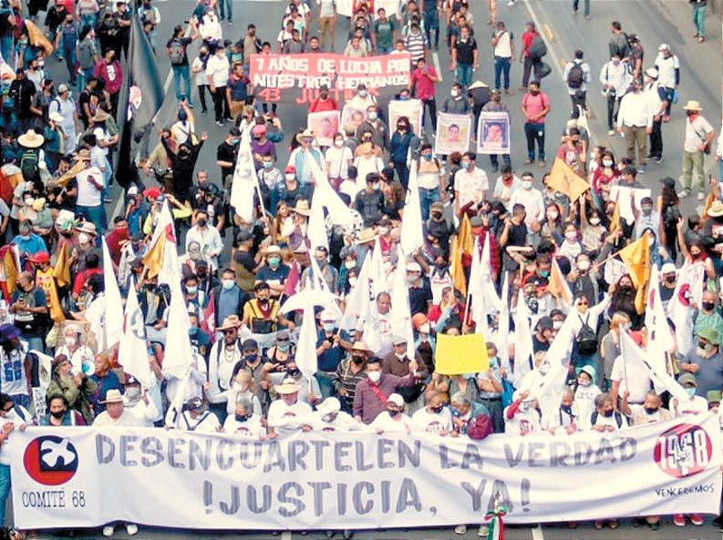 "Ellos han planteado que la defensa nacional entregue la información que tiene respecto de los hechos de Ayotzinapa. Es la misma demanda que traemos nosotros para el caso de 68 en la persecución de Echeverría. Echeverría ya murió, pasó dos años y medio en prisión domiciliaria, pero el caso no se agota porque se trata de un delito en contra de la humanidad y generaron un daño y tiene que operar el derecho internacional y el derecho interno que tiene que consistir en resolver la verdad, aplicar la justicia, reparar el daño, castigar a los culpables y garantizar la no repetición.