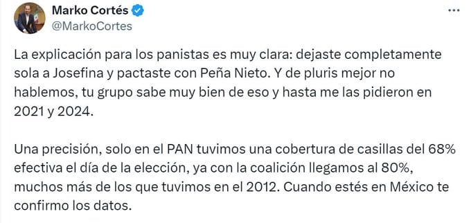 Incluso Marko Cortés reconoció la derrota de las elecciones 2024 y manifestó que se vale equivocarse.