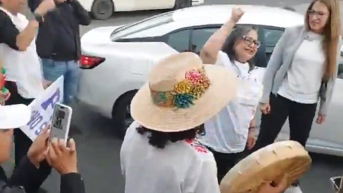 A su vez, los manifestantes le mostraron su apoyo a la ministra presidenta, que ayer abrió a consulta de los ministros de la Suprema Corte si se puede ordenar la suspensión del proceso legislativo de la reforma judicial.