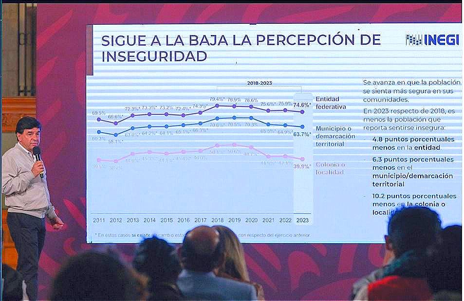 “Hay menos hogares que reportan ser víctimas del delito, es el dato que en diez años es el dato más pequeño. Hay importantes disminuciones en delitos como el robo en la calle, transporte público y extorsión. También en esta encuesta sigue la tendencia a la baja en la percepción de inseguridad sobre todo en el espacio más cercano a la gente, las colonias y los municipios, es la percepción menor en 10 años”, indicó.