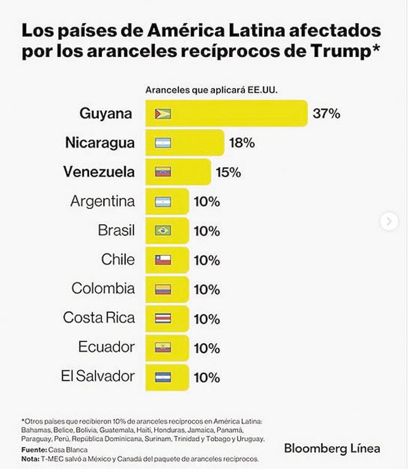 Trump impuso una tarifa arancelaria del 10 por ciento a Colombia, así como a otros países en la región como Brasil y Argentina.