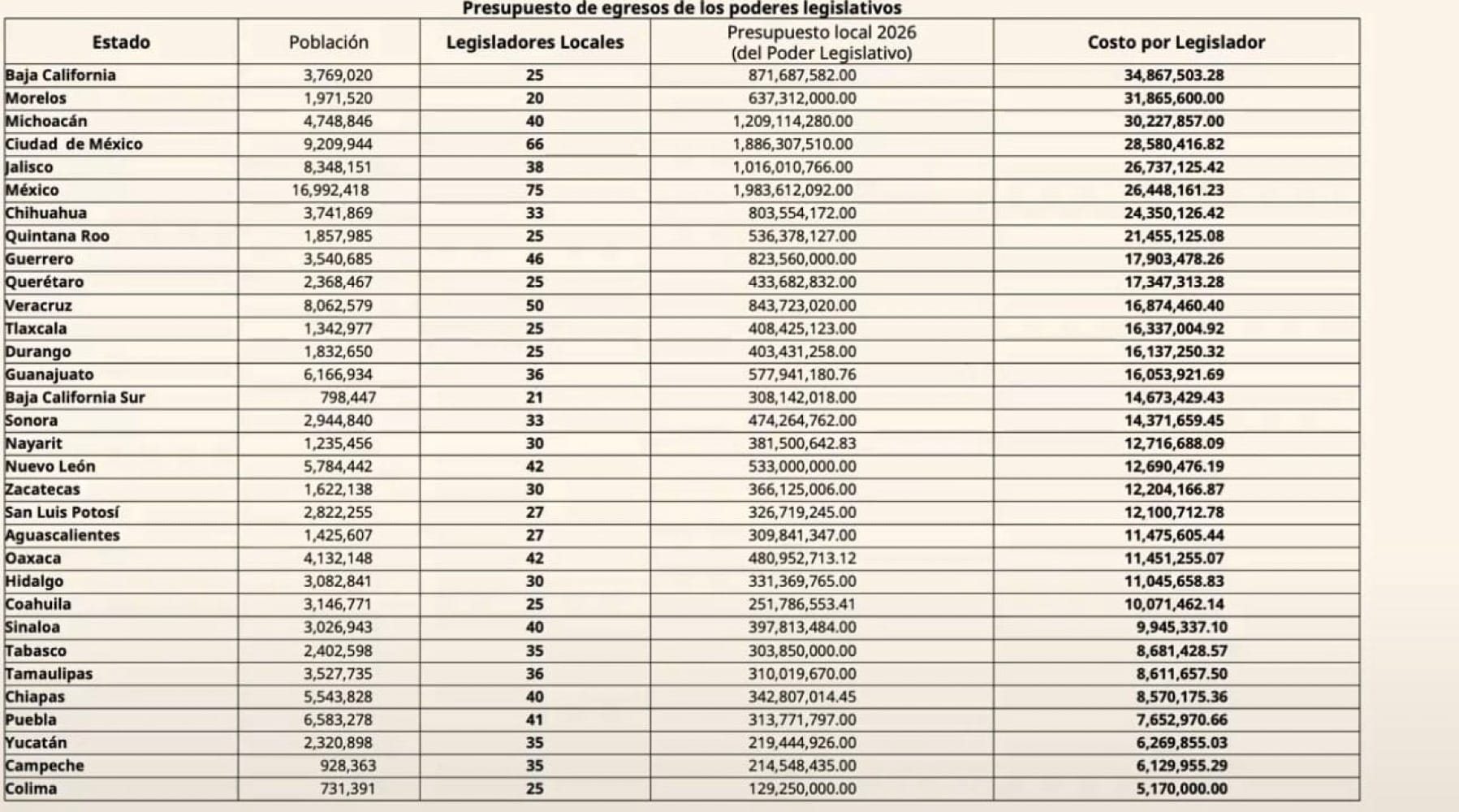 “¿Cómo nos explicamos que en algunos estados el costo por legislador sea de más de 30 millones de pesos?”, cuestionó.