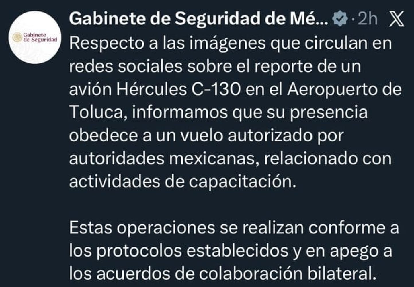 “No existen implicaciones operativas ni restricciones para México, ni para aerolíneas u operadores mexicano (…) fue emitido exclusivamente para operadores civiles de los Estados Unidos, incluyendo sus aerolíneas y pilotos", aseguró un comunicado.