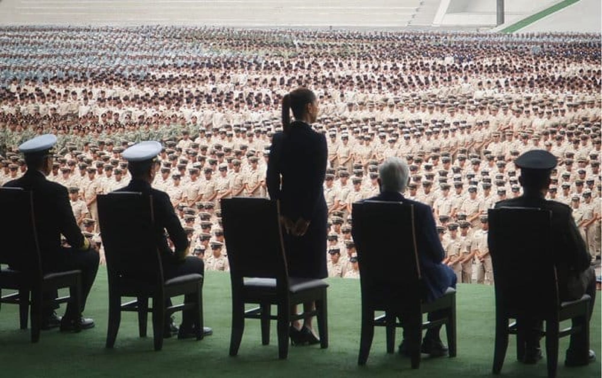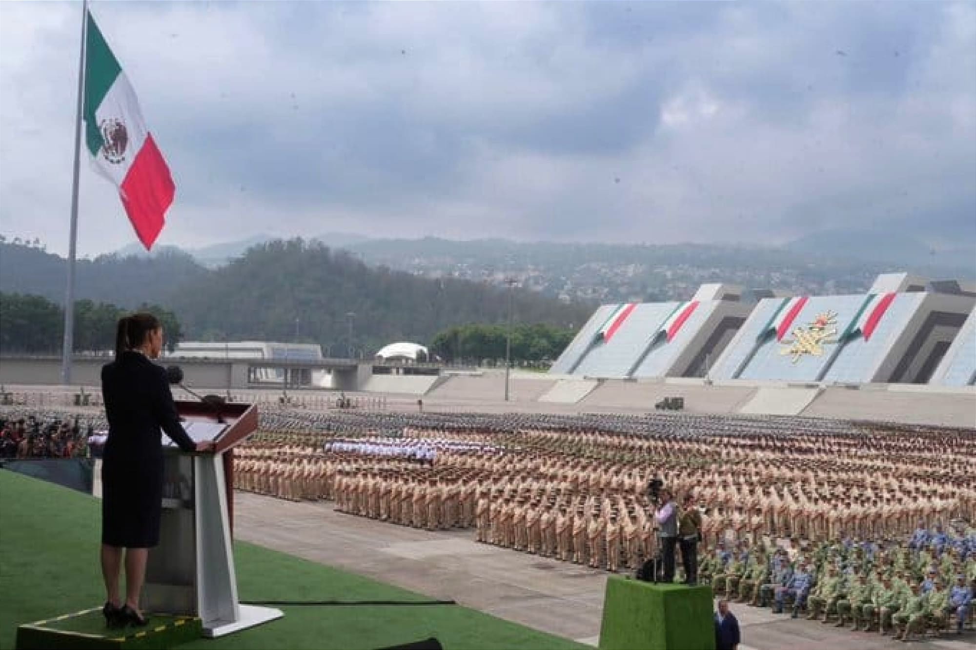 En las instalaciones del Heroico Colegio Militar, ubicado en la alcaldía Tlalpan, acompañada del presidente Andrés Manuel López Obrador, la morenista se dirigió a más de dos mil integrantes del Ejército Mexicano, Fuerza Aérea, Guardia Nacional y Secretaría de Marina: