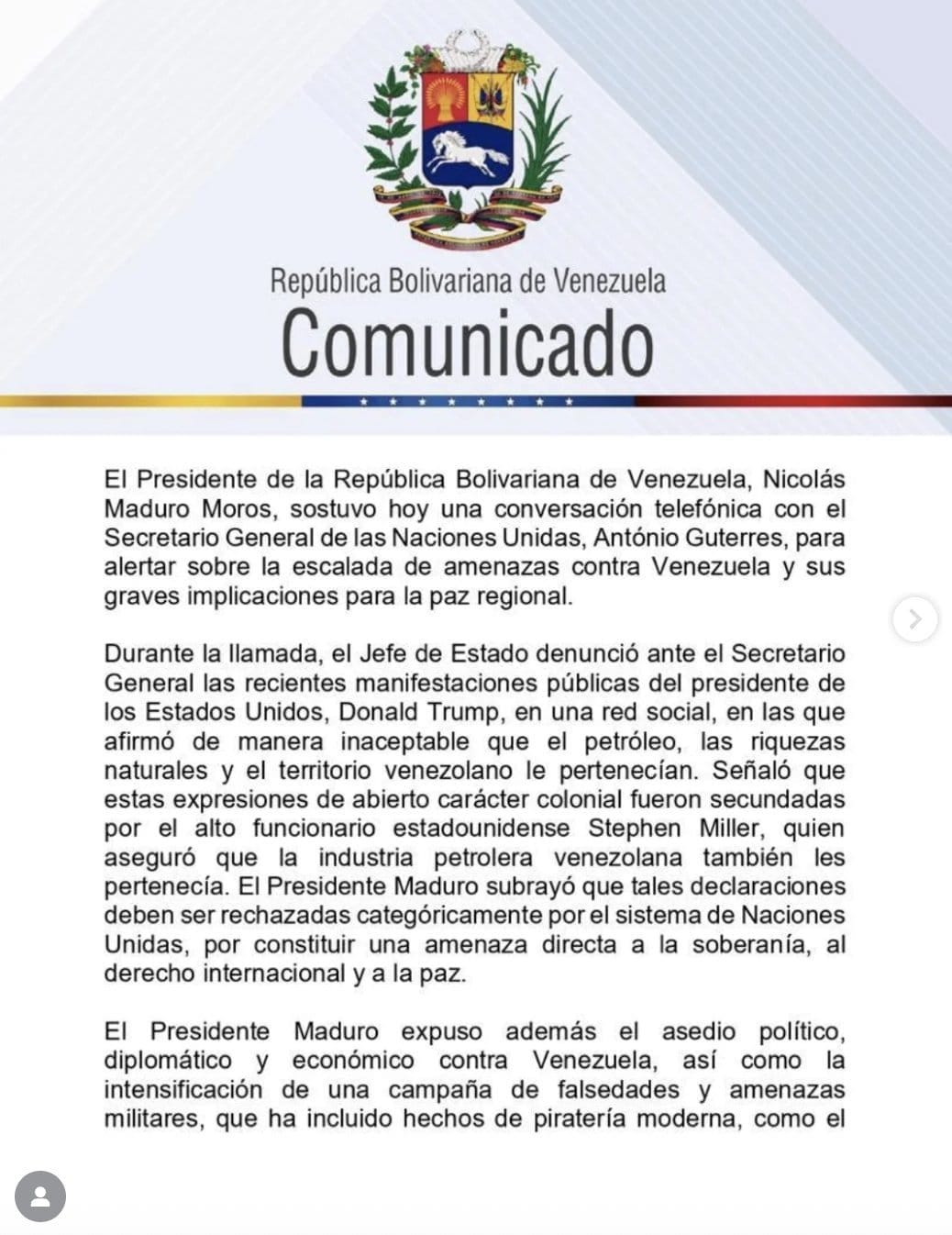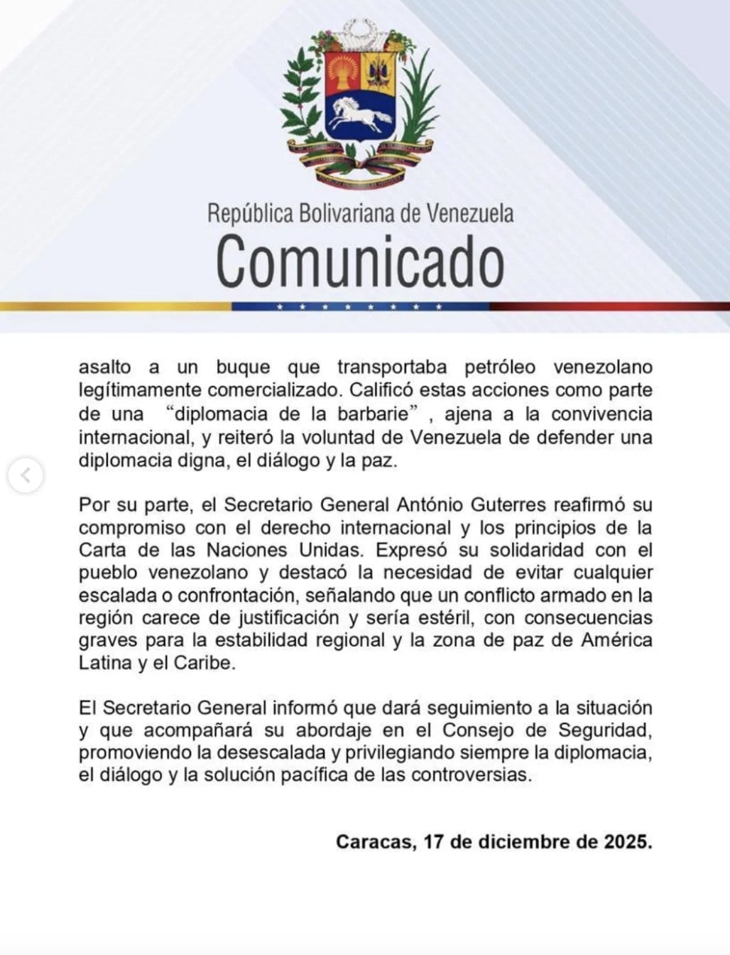 "Un llamado a Naciones Unidas que asuma su papel, no se le ha visto.