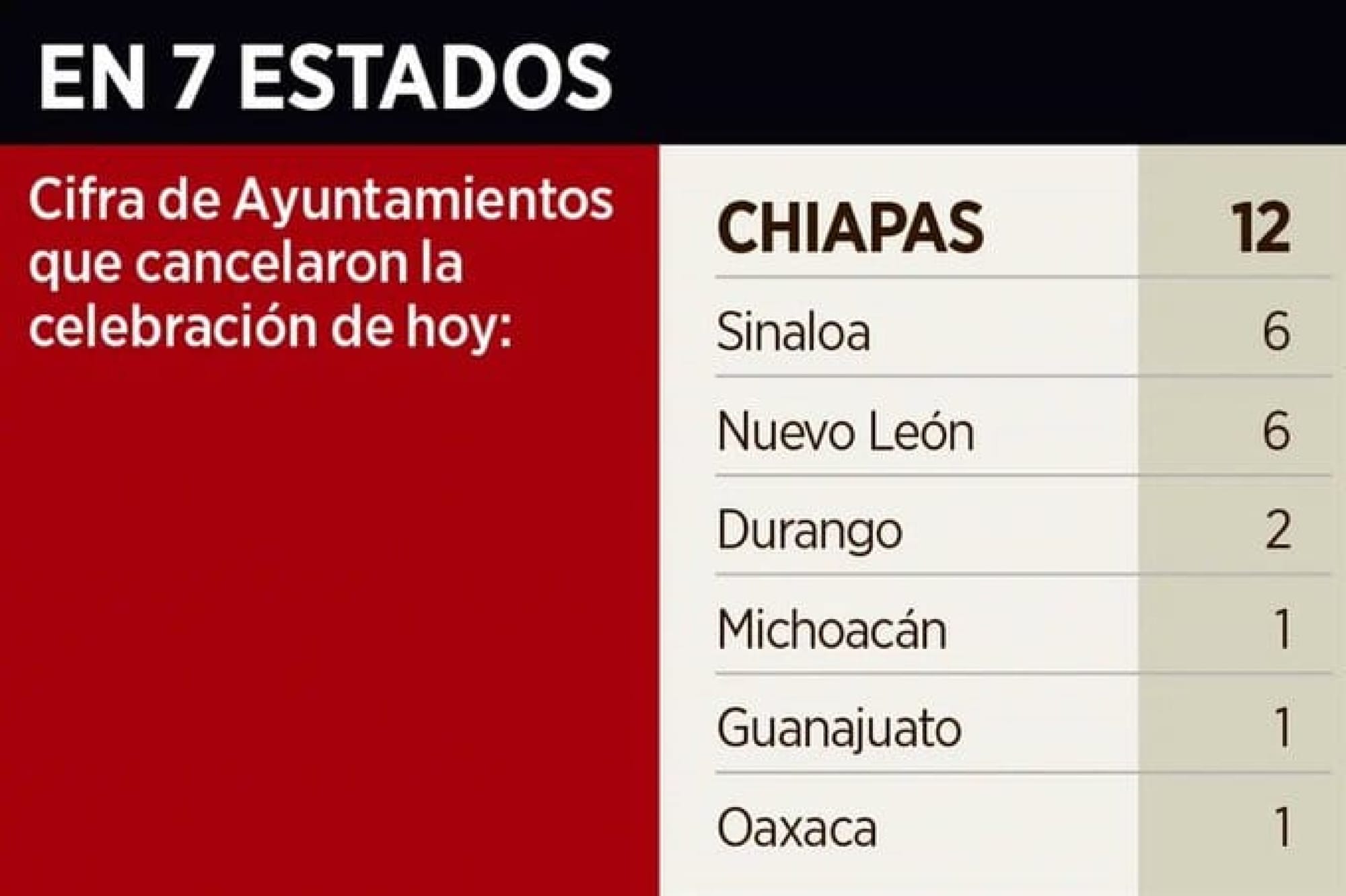 En Guanajuato y Oaxaca cancelaron las ceremonias los ayuntamientos de Comonfort y Zapotitlán de las Palmas, respectivamente.