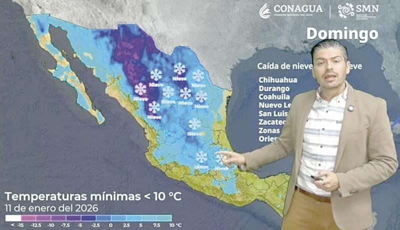 En su pronóstico del viernes 9 al lunes 12 de enero el organismo de la Comisión Nacional del Agua (Conagua) prevé además lluvias intensas a puntuales torrenciales, un prolongado evento de “Norte” y la posible caída de nieve o aguanieve en el norte, centro y oriente del territorio nacional.