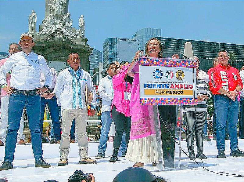 Para marcar el tono ciudadano de su futura campaña, Gálvez invitó a la ceremonia a Ceci Flores, una madre que busca a su hijo desaparecido, a Elsa Ortigoza, una mujer humilde cuyo hijo se graduó como odontólogo – la retrató como representante de los “aspiracionistas”--, y Nicolás Olguin, presidente de bienes comunales en Ixmiquilpan, Hidalgo e involucrado en la lucha por las tierras indígenas. “Este frente es amplio, en este frente cabemos todos”, dijo