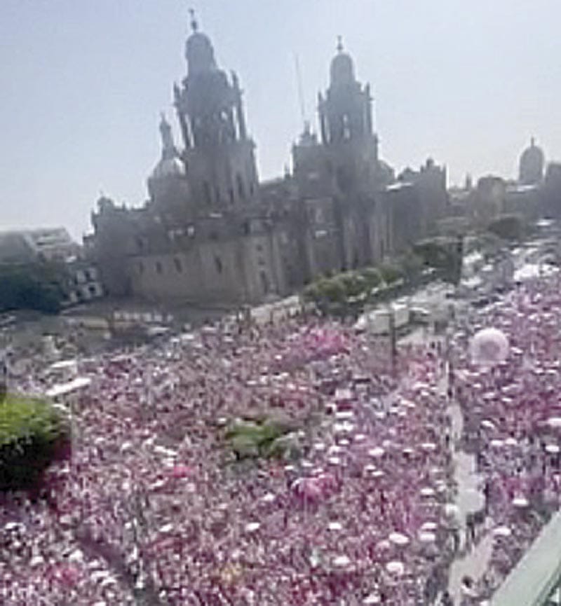 En una Plaza de la Constitución abarrotada de seguidores, con la bandera nacional ondeando junto a banderines de los partidos políticos que conforman la coalición Fuerza y Corazón por México, la senadora con licencia agradeció a la “marea rosa” que desde noviembre de 2022 hayan llenado “plazas y calles han levantado la voz contra el autoritarismo y la mentira”.