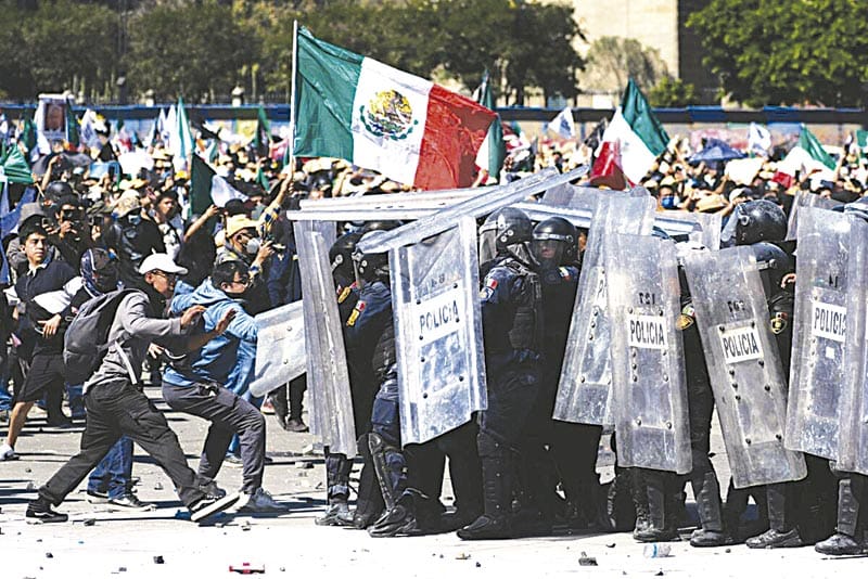 Así la situación afuera de Palacio Nacional, luego de que un grupo de manifestantes de la #GeneraciónZ derribara las vallas.
