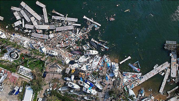 Señores encargados de la reparación de motores de lanchas, ubicados en la playa, comentaron que los yates de la élite y los que se rentan a turistas quedaron partidos en pedazos, como constatan imágenes de medios en los que se ven trozos de madera, proas…