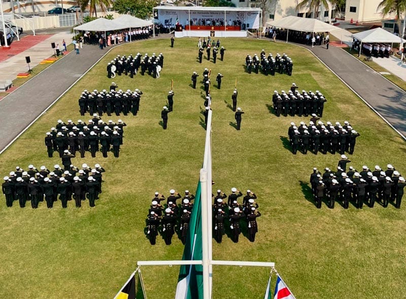 La ceremonia realizada en el patio central de la Escuela Náutica “Fernando Siliceo y Torres” fue presidida por el Almirante José Manuel Salinas Pérez, Jefe del Estado Mayor General de la Armada y el Capitán de Altura Manuel Fernando Gutiérrez Gallardo, Coordinador General de Puertos y Marina Mercante.