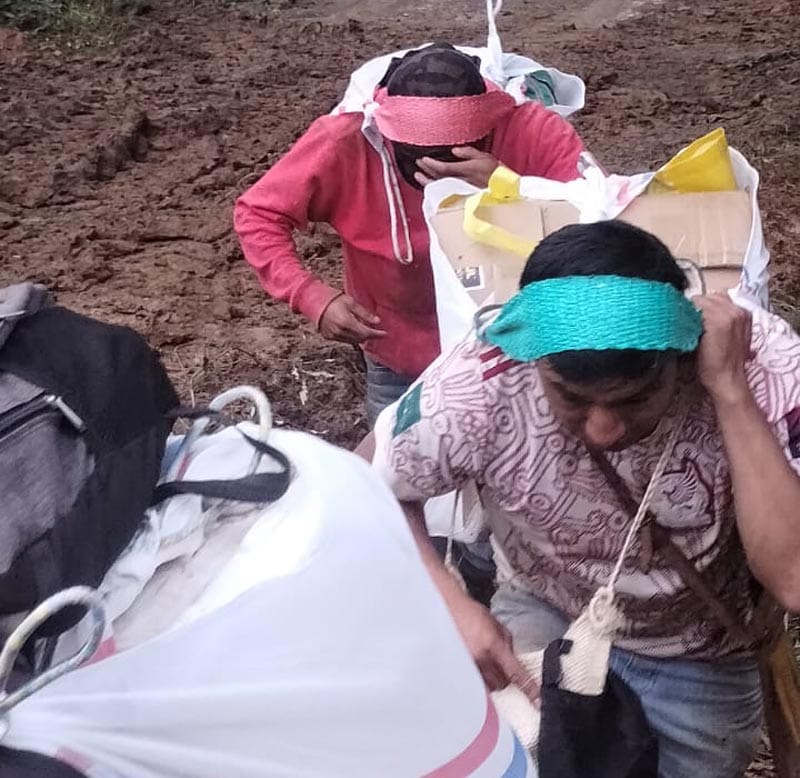 Pobladores de Titlazoquico, El Plan y Xococapa, del meritito #Ilamatlán van entre el monte y caminan kilómetros para llegar a Chahutlan a entregar ayuda.
