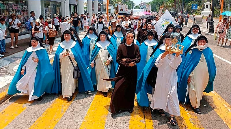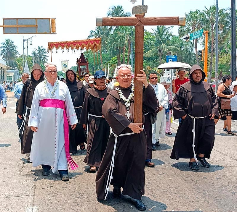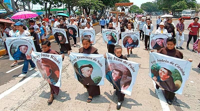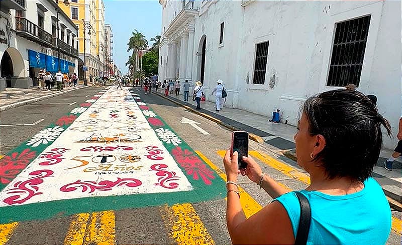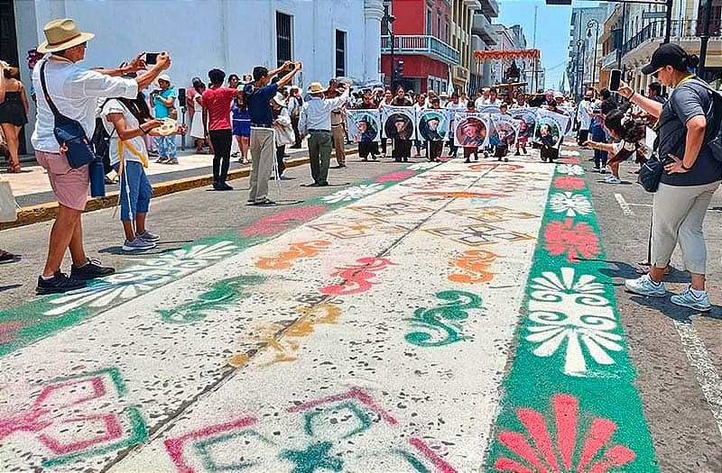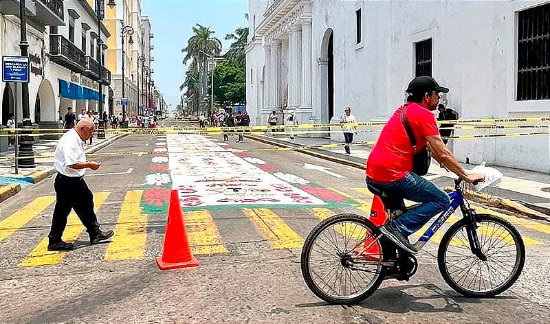 Este sábado la Avenida Independencia amaneció cerrada a la circulación vehicular luego de la instalación de un tapete de aserrín y arena, que forma parte de las actividades que realiza la iglesia católica por los 500 años de la llegada de frailes franciscanos a Veracruz, para traer el evangelio.