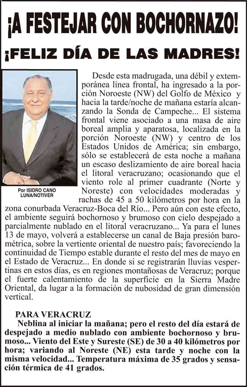 PRIMERA ¡A FESTEJAR CON BOCHORNAZO! - ¡FELIZ DÍA DE LAS MADRES! 10 mayo 2024 Más Noticias ¡YA HAY TERNA! - RAÚL PEIMBERT EN LA LISTA ¡“CEMENTERIO”! - DE ULÚAS ¡INAUGURA PATY OTRA CALLE! ¡NO LE CREYERON! - Y LO BUSCAN NOTI-MEME | - ECOS DEL INFORME! ¡VERÓNICA VA CON NAHLE! - Y AL CONGRESO ¡“FAST TRACK”! - *Mientras el Mariner salía y entraba de Pajaritos en Coatzacoalcos ¡OPERATIVO LUPE-REYES! ¡MANDAN LA BILLETIZA! - *Corea manda 150 mil dólares ¡CRISTINA GANA LA ELECCIÓN!