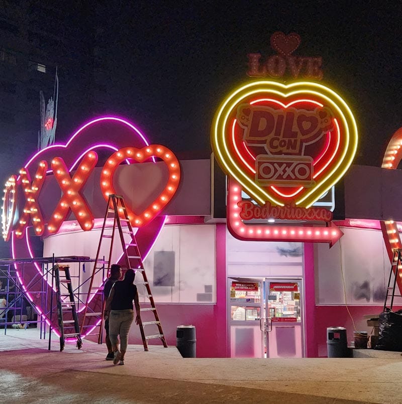 Es por eso por lo que, la marca comenzó a adornar una de sus sucursales ubicada en el bulevar “Vicente Fox Quesada”, con corazones gigantes luminosos y un par de cupidos con los ojos colorados.