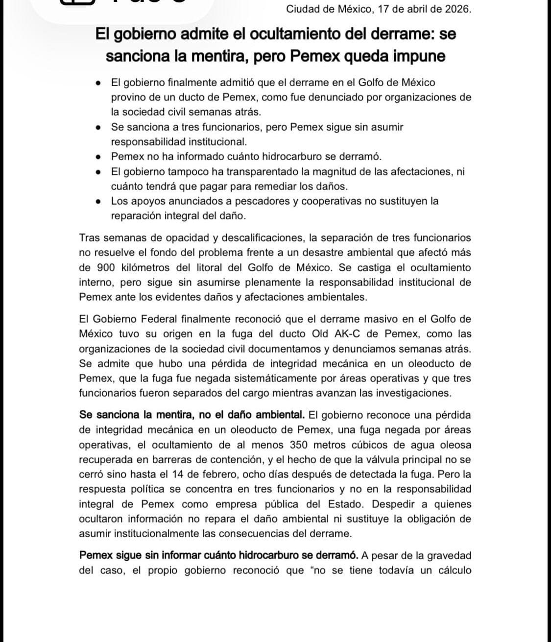 Aunque la paraestatal aseguró mediante un comunicado oficial que la situación se encuentra bajo control y no representa un peligro inminente para los habitantes de la región, el incidente ha reavivado las críticas de las comunidades locales respecto al mantenimiento de la infraestructura petrolera en desuso.