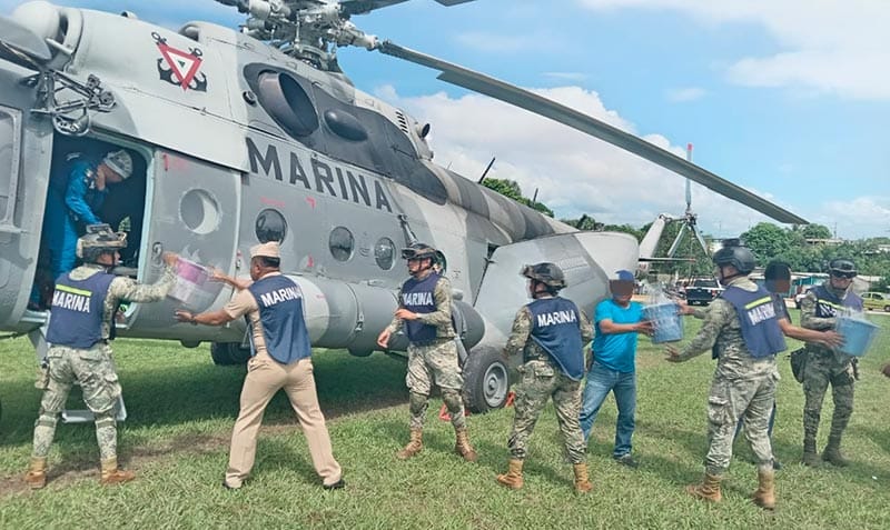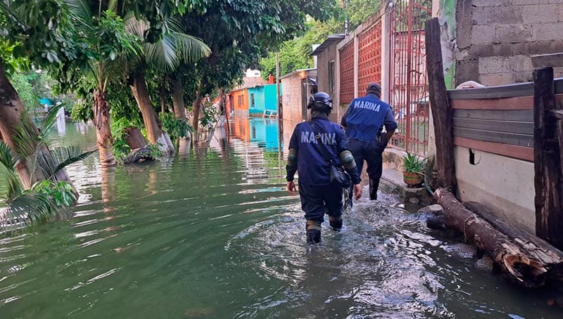 Para tal fin, se han desplegado 400 elementos navales dotados con herramientas básicas y equipo especializado, para brindar los apoyos necesarios a las familias afectadas.