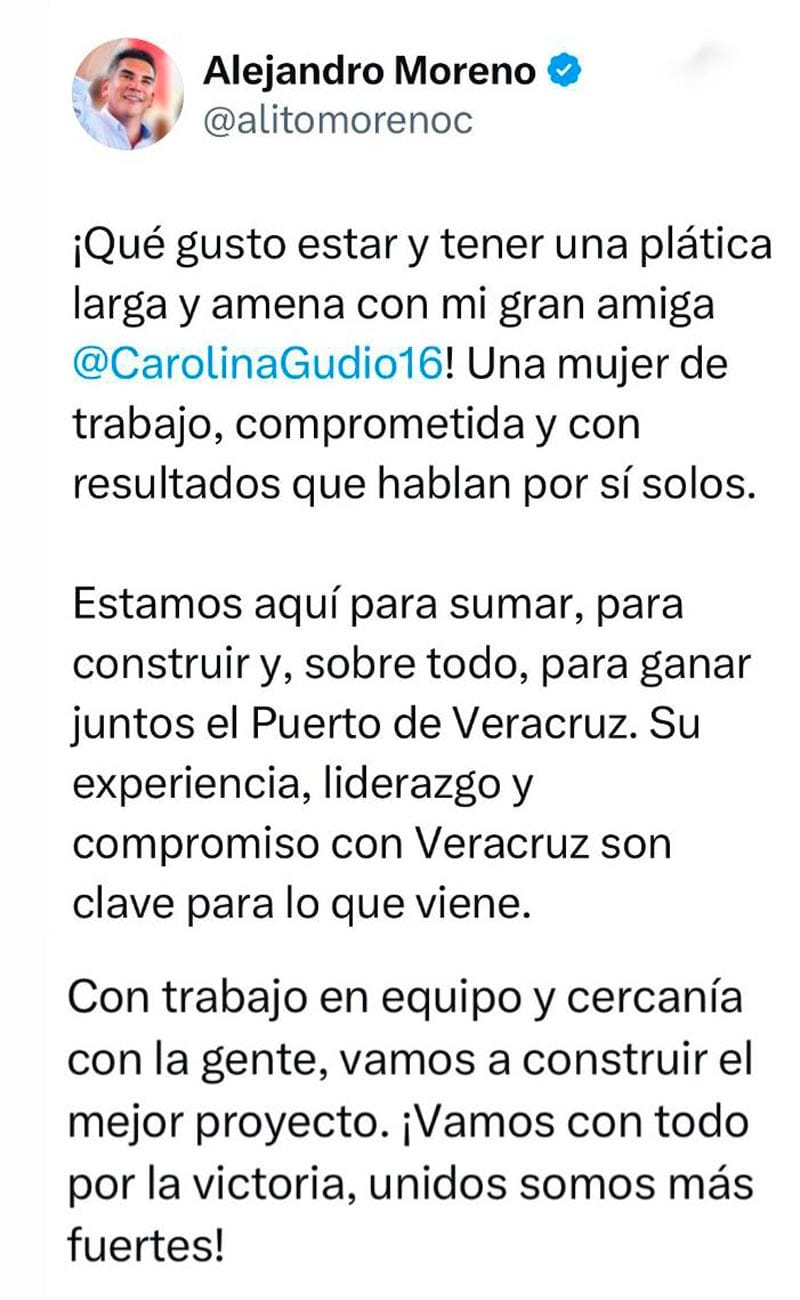 Señaló que Carolina Gudiño tiene experiencia, liderazgo y compromiso con Veracruz, que son clave para lo que viene.