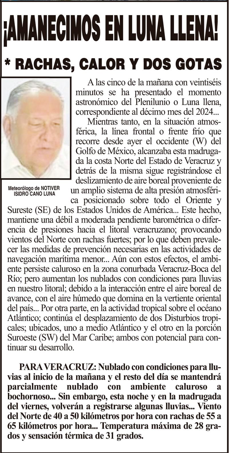 PRIMERA ¡AMANECIMOS EN LUNA LLENA! - *RACHAS, CALOR Y DOS GOTAS 17 octubre 2024 Más Noticias ¡YA HAY TERNA! - RAÚL PEIMBERT EN LA LISTA ¡“CEMENTERIO”! - DE ULÚAS ¡INAUGURA PATY OTRA CALLE! ¡NO LE CREYERON! - Y LO BUSCAN NOTI-MEME | - ECOS DEL INFORME! ¡VERÓNICA VA CON NAHLE! - Y AL CONGRESO ¡“FAST TRACK”! - *Mientras el Mariner salía y entraba de Pajaritos en Coatzacoalcos ¡OPERATIVO LUPE-REYES! ¡MANDAN LA BILLETIZA! - *Corea manda 150 mil dólares ¡CRISTINA GANA LA ELECCIÓN!