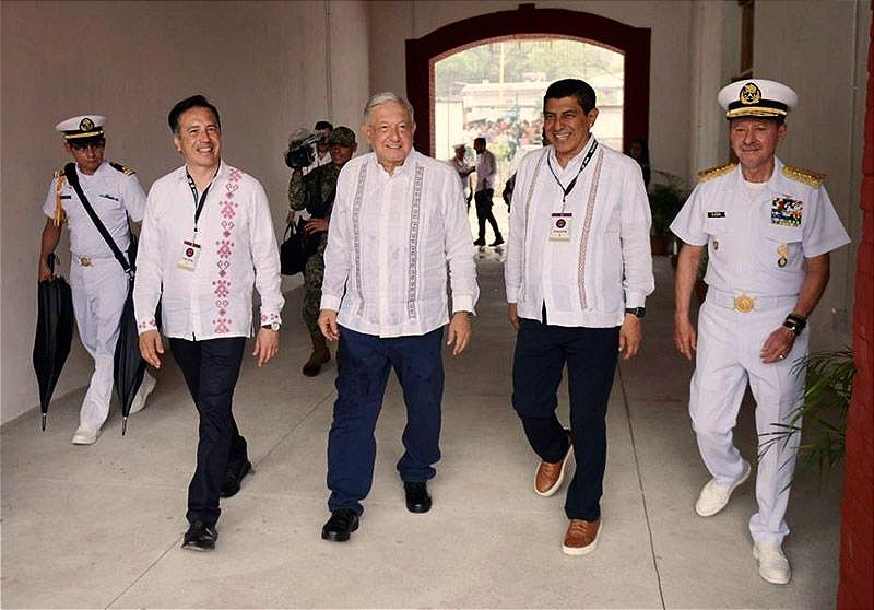 Para esta prueba el Jefe del Ejecutivo estuvo acompañado por titular de Marina, almirante José Rafael Ojeda Durán; los gobernadores de Oaxaca, Salomón Jara Cruz y de Veracruz Cuitláhuac García Jiménez, ambos emanados de Morena.