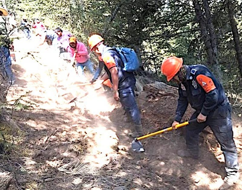 A los trabajos se han sumado voluntarios de municipios cercanos como Xico, pues el jueves las llamas alcanzaron las copas de los árboles.