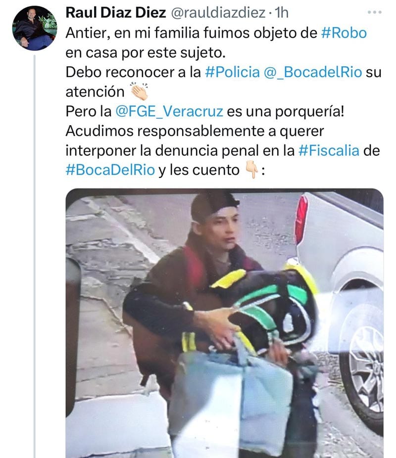 Díaz Diez realizó la denuncia pública a través de redes sociales en su cuenta de Twitter, dijo que él y su familia fueron objeto de un robo en casa por un sujeto, del cual difundió su fotografía.