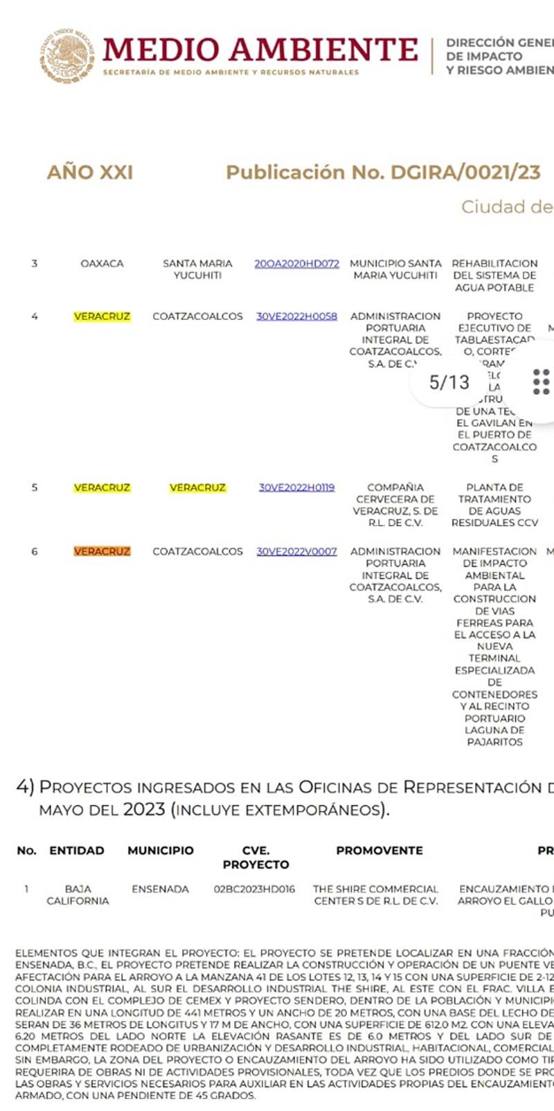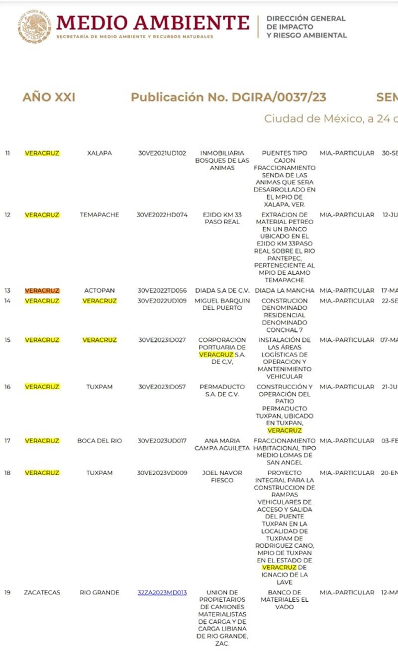 Durante todo 2023 la Gaceta Ecológica, órgano oficial dependiente de la Semarnat, no ha publicado el ingreso de una solicitud de proyecto para su autorización o resolutivo del mismo, de acuerdo a como lo marca la ley.