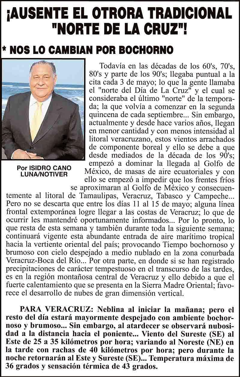 PRIMERA ¡AUSENTE EL OTRORA TRADICIONAL "NORTE DE LA CRUZ"! - *NOS LO CAMBIAN POR BOCHORNO 3 mayo 2024 Más Noticias ¡YA HAY TERNA! - RAÚL PEIMBERT EN LA LISTA ¡“CEMENTERIO”! - DE ULÚAS ¡INAUGURA PATY OTRA CALLE! ¡NO LE CREYERON! - Y LO BUSCAN NOTI-MEME | - ECOS DEL INFORME! ¡VERÓNICA VA CON NAHLE! - Y AL CONGRESO ¡“FAST TRACK”! - *Mientras el Mariner salía y entraba de Pajaritos en Coatzacoalcos ¡OPERATIVO LUPE-REYES! ¡MANDAN LA BILLETIZA! - *Corea manda 150 mil dólares ¡CRISTINA GANA LA ELECCIÓN!
