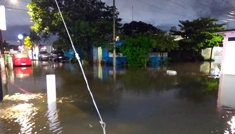 También por la noche se dio un hecho lamentable en el Fraccionamiento Villa Rica en donde una vivienda fue embestida por un alud de agua y lodo.