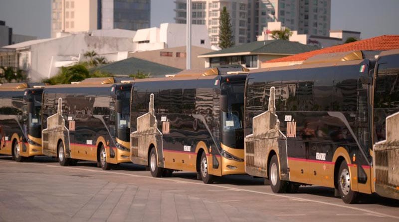 Boca del Río, Ver. (AVC).– Con una flota inicial de 102 unidades híbridas y una tarifa de 15 pesos, este jueves la gobernadora Rocío Nahle García dio el banderazo de inicio al servicio de transporte “Ulúa” en la zona conurbada Veracruz–Boca del Río, como parte del plan estatal de moder.nización del transporte público.