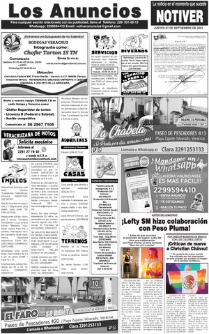 PRIMERA ¡BOCHORNO DE DÍA; LLUEVE DE NOCHE! * ¡BOCHORNO DE DÍA; LLUEVE DE NOCHE! ** "LEE" SE PONE FUERTE EN EL ATLÁNTICO Y ATRÁS VIENE "MARGOT" 7 septiembre 2023 Más Noticias ¡BLOQUEO DEL SECTOR SALUD EN PLAN DE RÍO! ¡TRAGEDIA EN LA AUTOPISTA VERACRUZ–XALAPA! NOTI-MEME | - YA LLEGÓ LA RAMA! LA ENCUESTA | - YA VIENE! ¡RECONOCIMIENTO A DIRIGENTE DE TAXISTAS! ¡LE VAN A ENTRAR! - *Claudia ordena a Nahle ¡QUIEREN MANDOS DE LA MARINA! - EN LAS POLICÍAS MUNICIPALES ¡ATACA EL VIRUS COXSACKIE, HAY 71 CASOS! - *Con mayor incidencia en 2025 y casos concentrados en Xalapa y Veracruz LOS CARTONES ¡SALMA SACA VIDEO! - RETEMUNDIAL...