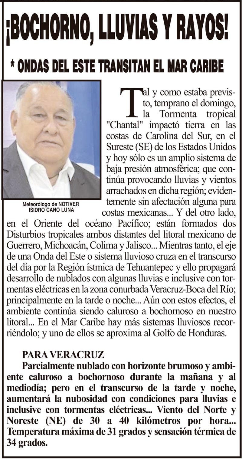 PRIMERA ¡BOCHORNO, LLUVIAS Y RAYOS! - *ONDAS DEL ESTE TRANSITAN EL MAR CARIBE 7 julio 2025 Más Noticias LA PORTADA - VIERNES 5 DE DICIEMBRE 2025 ¡HOY SOPLA FRESCO Y DE FRENTE! - *PERO EL LUNES 8, ESTARÁ FUERTE Y CON LLUVIAS. LA ENCUESTA | - ME ESTÁS OYENDO INÚTIL?... ¡CON BAILONGOS QUIEREN AYUDAR A LOS DAMNIFICADOS DEL NORTE! - *El mismo Alor, toca los timbales ¡YA SE LA APROBARON! - REFORMA PARA LA FISCALÍA ESTATAL NOTI-MEME | - ASÍ ESTUVO EL INFORME... ¡MÁS DE 9 MIL MILLONES! - *Eso costaría cancelar en Veracruz al Grupo MAS ¡LE DAN LUZ VERDE! - DESDE GUATEMALA ¡EL CUARTO! ¡Y COM-PA-RE-CIÓ! - ÁNDALE...