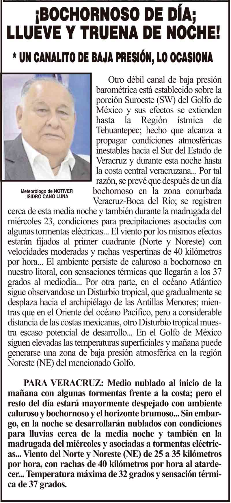 PRIMERA ¡BOCHORNOSO DE DÍA; LLUEVE Y TRUENA DE NOCHE! - *UN CANALITO DE BAJA PRESIÓN, LO OCASIONA 22 julio 2025 Más Noticias LA PORTADA - VIERNES 5 DE DICIEMBRE 2025 ¡HOY SOPLA FRESCO Y DE FRENTE! - *PERO EL LUNES 8, ESTARÁ FUERTE Y CON LLUVIAS. LA ENCUESTA | - ME ESTÁS OYENDO INÚTIL?... ¡CON BAILONGOS QUIEREN AYUDAR A LOS DAMNIFICADOS DEL NORTE! - *El mismo Alor, toca los timbales ¡YA SE LA APROBARON! - REFORMA PARA LA FISCALÍA ESTATAL NOTI-MEME | - ASÍ ESTUVO EL INFORME... ¡MÁS DE 9 MIL MILLONES! - *Eso costaría cancelar en Veracruz al Grupo MAS ¡LE DAN LUZ VERDE! - DESDE GUATEMALA ¡EL CUARTO! ¡Y COM-PA-RE-CIÓ! - ÁNDALE...