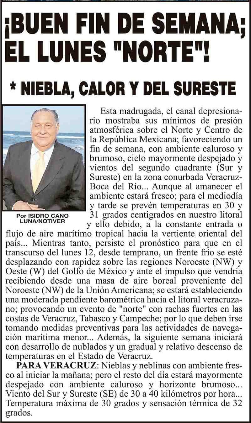 PRIMERA ¡BUEN FIN DE SEMANA; EL LUNES "NORTE"! * NIEBLA, CALOR Y DEL SURESTE 10 febrero 2024 Más Noticias ¡YA HAY TERNA! - RAÚL PEIMBERT EN LA LISTA ¡“CEMENTERIO”! - DE ULÚAS ¡INAUGURA PATY OTRA CALLE! ¡NO LE CREYERON! - Y LO BUSCAN NOTI-MEME | - ECOS DEL INFORME! ¡VERÓNICA VA CON NAHLE! - Y AL CONGRESO ¡“FAST TRACK”! - *Mientras el Mariner salía y entraba de Pajaritos en Coatzacoalcos ¡OPERATIVO LUPE-REYES! ¡MANDAN LA BILLETIZA! - *Corea manda 150 mil dólares ¡CRISTINA GANA LA ELECCIÓN!