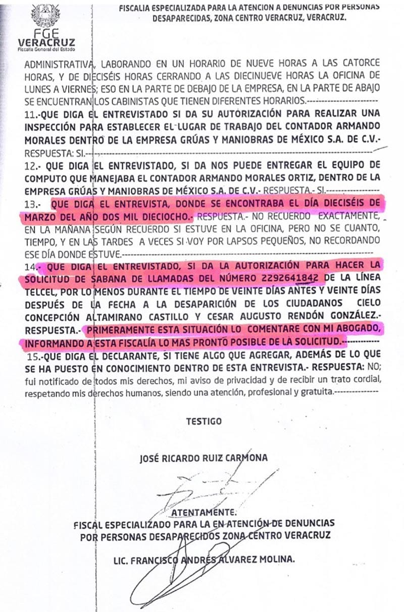 Medina Vargas recordó que la joven Cielo Concepción, de entonces 24 años de edad, desapareció, junto con el ex trabajador del candidato de Morena, César Augusto Rendón González, en marzo del 2018 después de que ambos acudieron a oficinas de Grúas Ruiz, las cuales se ubican en la avenida Lafragua de la ciudad de Veracruz.