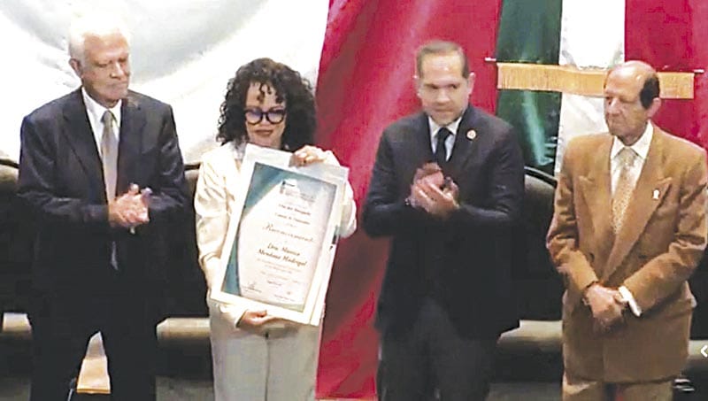 Acto seguido, la doctora Josefina Pérez Romo, magistrada del Quinto Tribunal Colegiado en Materia Penal del Primer Circuito, fue galardonada con el diploma al Mérito Académico 2025 “Dr. Ricardo Franco Guzmán”, a quien agradeció haberlo recibido de sus manos.
