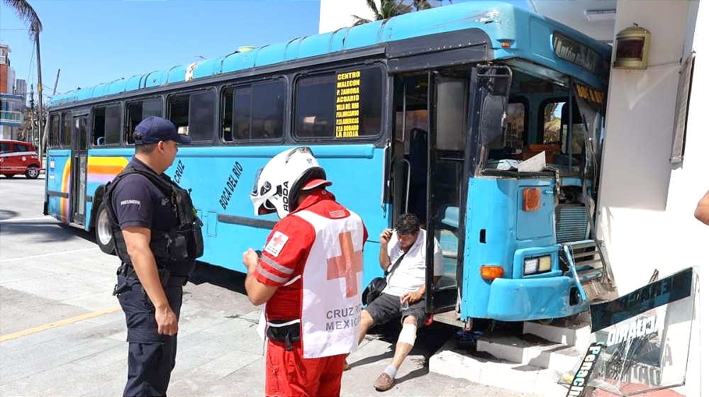 Momentos de tensión se vivieron en la zona turística del boulevard Manuel Ávila Camacho luego de que un autobús de la ruta Boca del Río - Antón Lizardo, con número económico 1002, colisionara contra la fachada de la Escuela Náutica Mercante Capitán de Altura Fernando Siliceo y Torres.