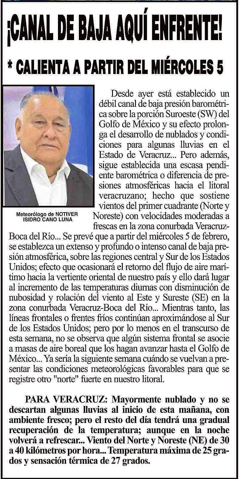 PRIMERA ¡CANAL DE BAJA AQUÍ ENFRENTE! - *CALIENTA A PARTIR DEL MIÉRCOLES 5 3 febrero 2025 Más Noticias ¡YA HAY TERNA! - RAÚL PEIMBERT EN LA LISTA ¡“CEMENTERIO”! - DE ULÚAS ¡INAUGURA PATY OTRA CALLE! ¡NO LE CREYERON! - Y LO BUSCAN NOTI-MEME | - ECOS DEL INFORME! ¡VERÓNICA VA CON NAHLE! - Y AL CONGRESO ¡“FAST TRACK”! - *Mientras el Mariner salía y entraba de Pajaritos en Coatzacoalcos ¡OPERATIVO LUPE-REYES! ¡MANDAN LA BILLETIZA! - *Corea manda 150 mil dólares ¡CRISTINA GANA LA ELECCIÓN!