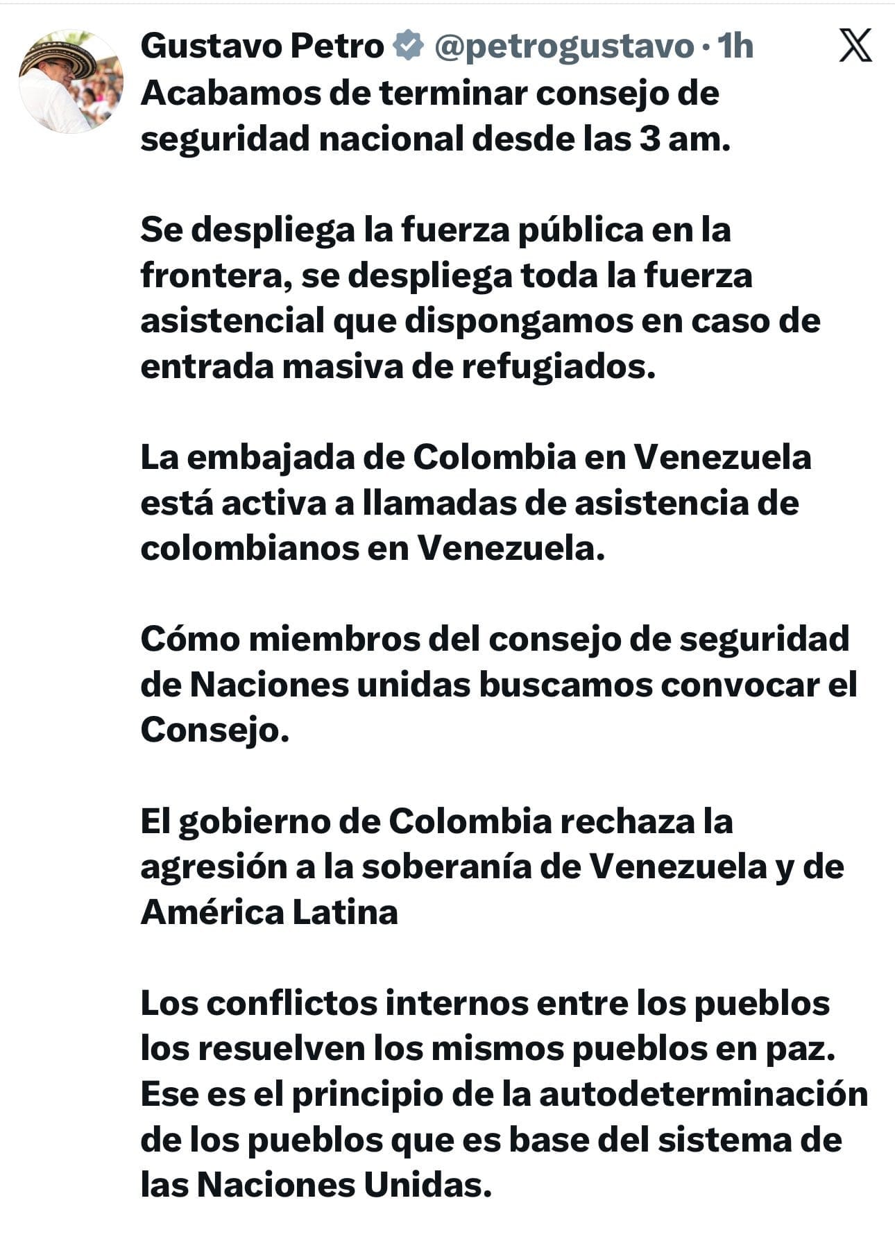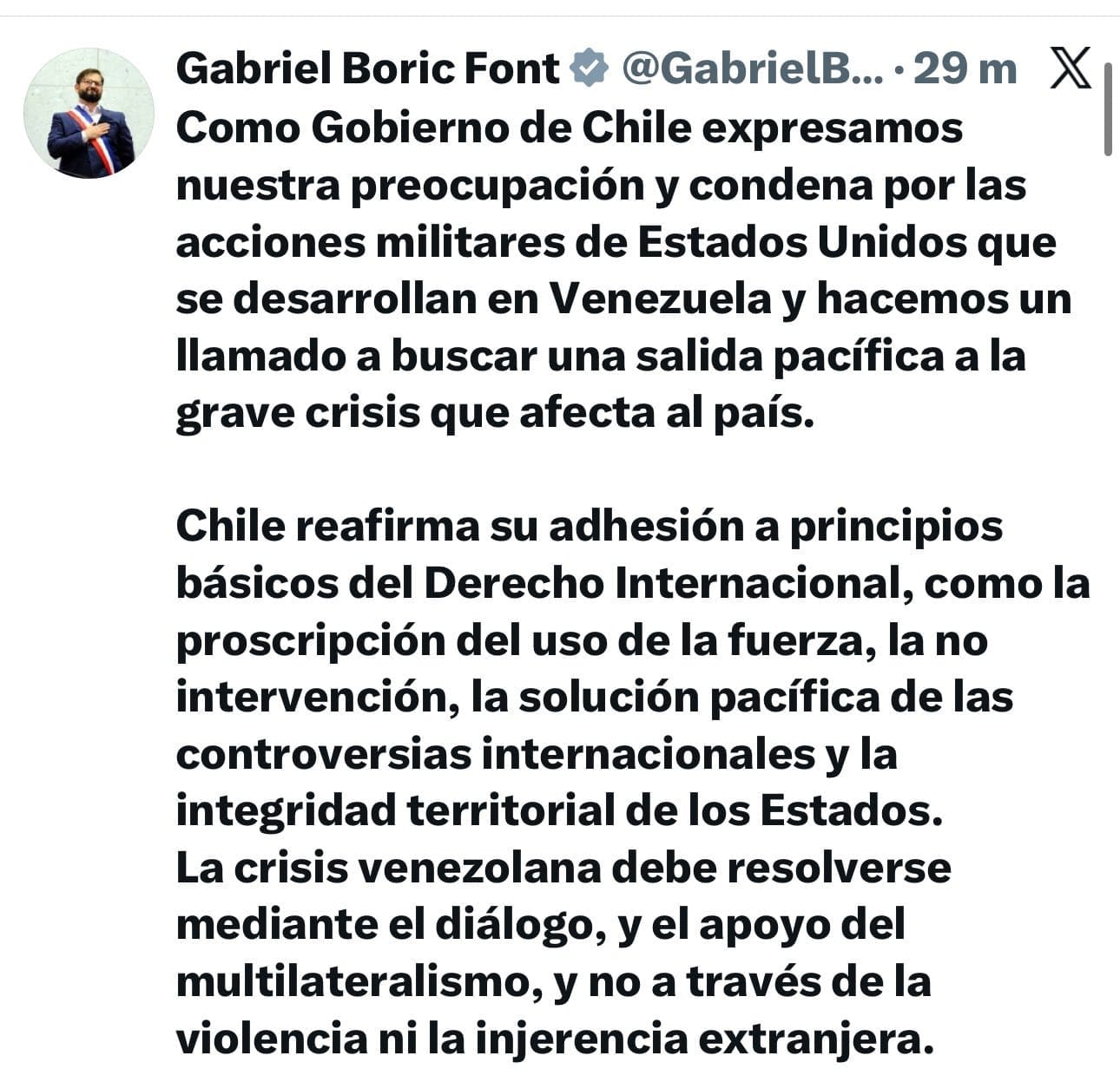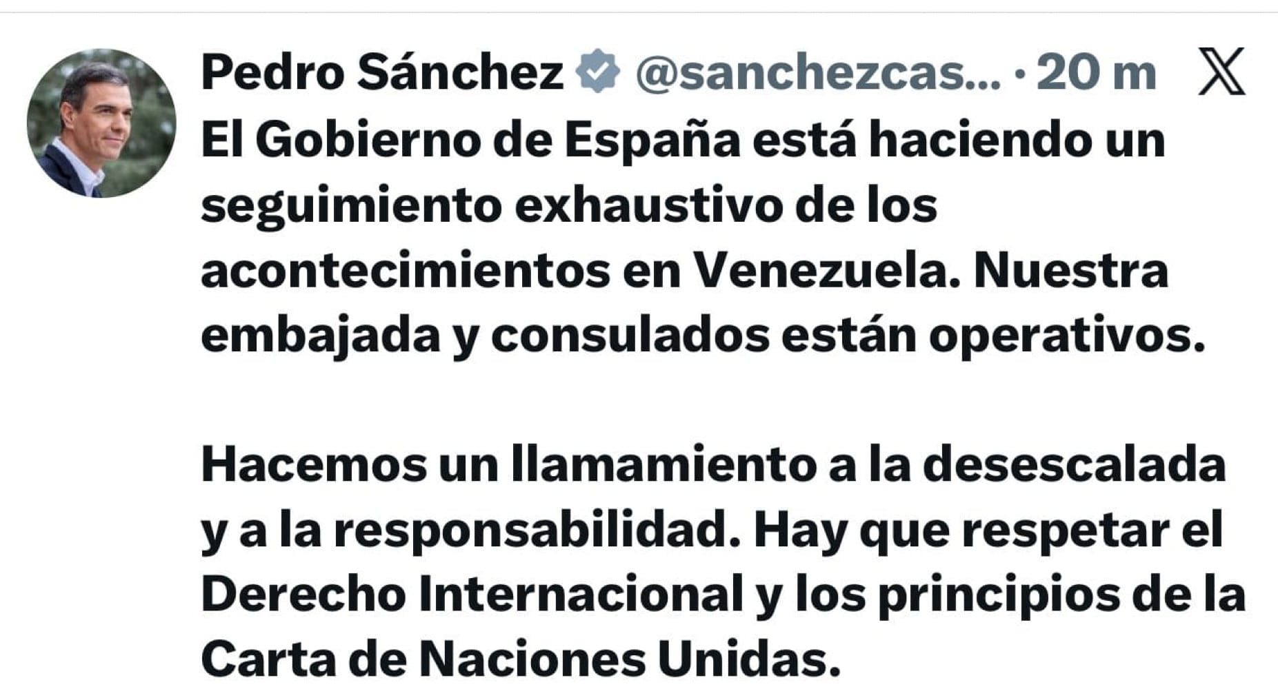 “EE UU ha llevado a cabo con éxito un ataque a gran escala contra Venezuela y su líder, el presidente Nicolás Maduro, que, junto con su mujer, ha sido capturado y trasladado en avión fuera del país.