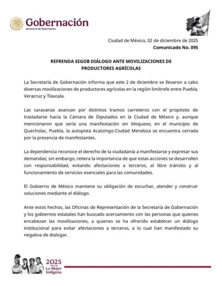 La caravana partió del municipio de Perote y avanzó por la carretera México-Veracruz-Tlaxcala, con la intención de llegar a la capital del país para que sus demandas sean escuchadas por las autoridades federales y los legisladores.