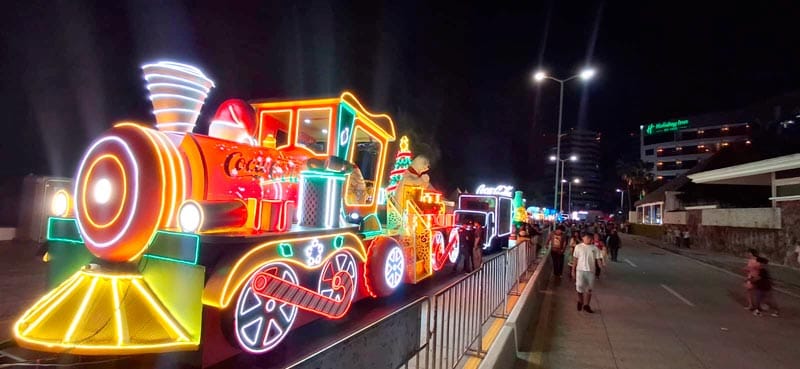 La caravana destacó por su despliegue de luces, colorido y ambiente festivo, siendo disfrutada no solo por quienes se congregaron en el bulevar, sino también por familias que observaron el desfile desde el interior de sus domicilios, ubicados en esta orilla costera de la ciudad boqueña.