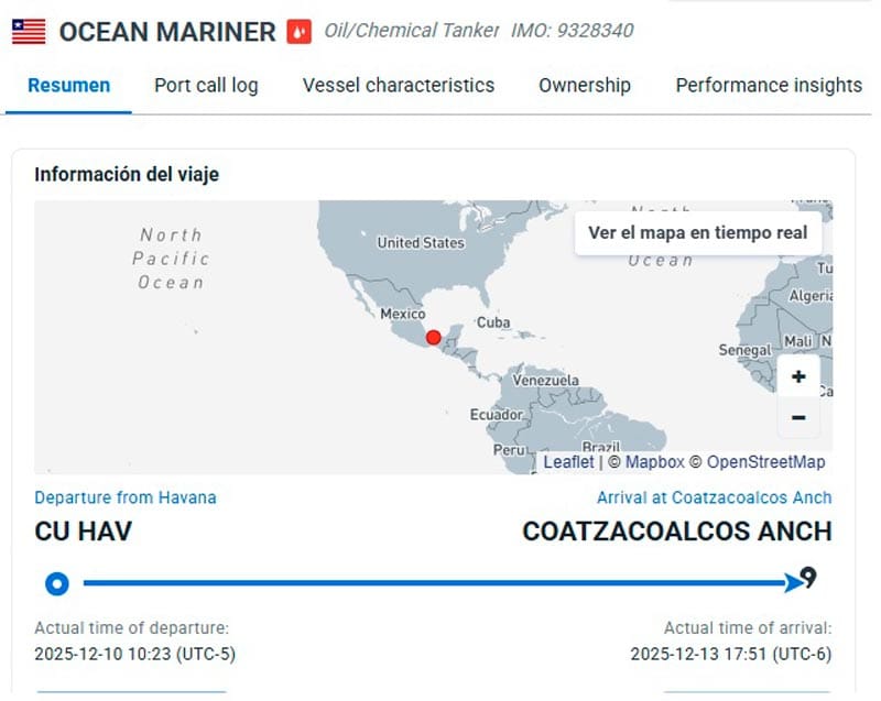 A la par en tanto el Ocean Mariner también con bandera de Liberia entró a la terminal este sábado 13 procedente de La Habana con el propósito de cargar diesel y esta vez fueron 10 mil 261 toneladas del combustible, una cifra similar a la carga anterior, aunque un poco menor.