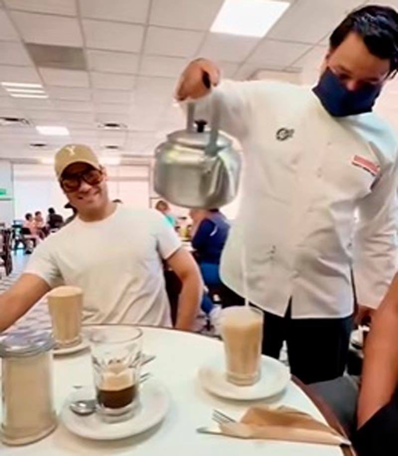 Incluso al difundir su asistencia en plataformas hizo hincapié al famoso tintineo de este ya legendario café veracruzano.