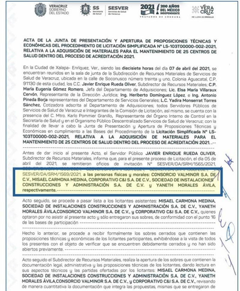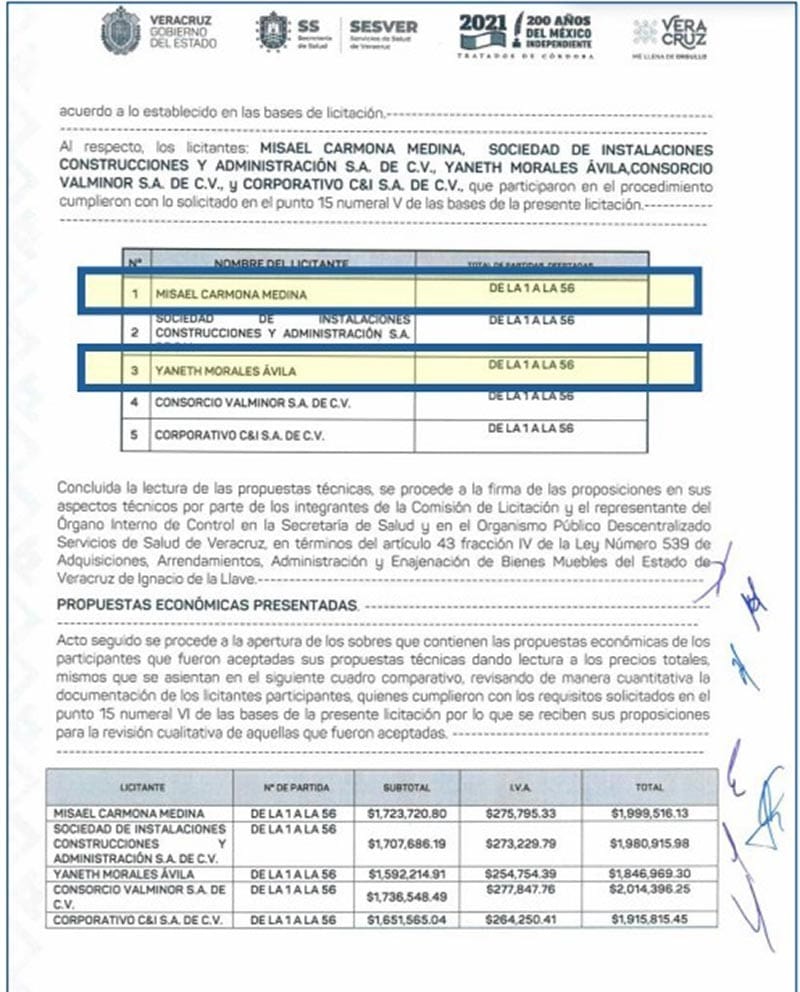 Exhibió el caso de Bethy Torres Hernández, de 23 años, empleada de la propia Secretaría de Salud cuyo salario es de 16 mil pesos mensuales; sin embargo, de manera sospechosa, obtuvo un contrato por más de un millón de pesos “Relativa la contratación del servicio de mantenimiento correctivo urgente por contingencia COVID-19, equipos electromédicos y electromecánicos de la Red estatal de hospitales de Veracruz”.