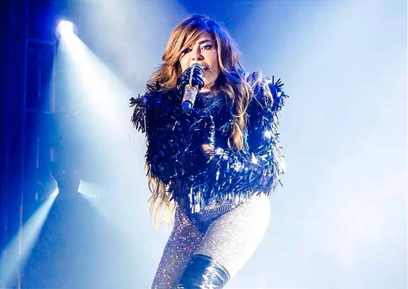 “Raza, esta noche es de celebrar”, dando inicio a una presentación que incluyó tanto sus temas más recientes como los que la hicieron famosa.
