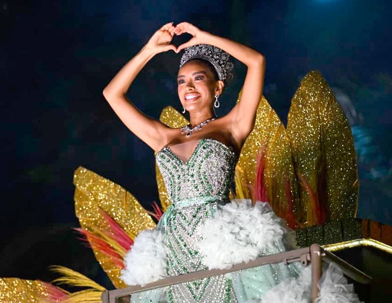 La Corte Real, encabezada por los Soberanos Fernanda I y Nayo I, así como los reyes infantiles Maryelli I y Gael I-, derrochó entusiasmo y glamour con sus impresionantes atuendos de gala, a bordo de majestuosos carros alegóricos, animaron a miles de asistentes y convirtieron el ambiente fresco en una noche de calidez jarocha.
