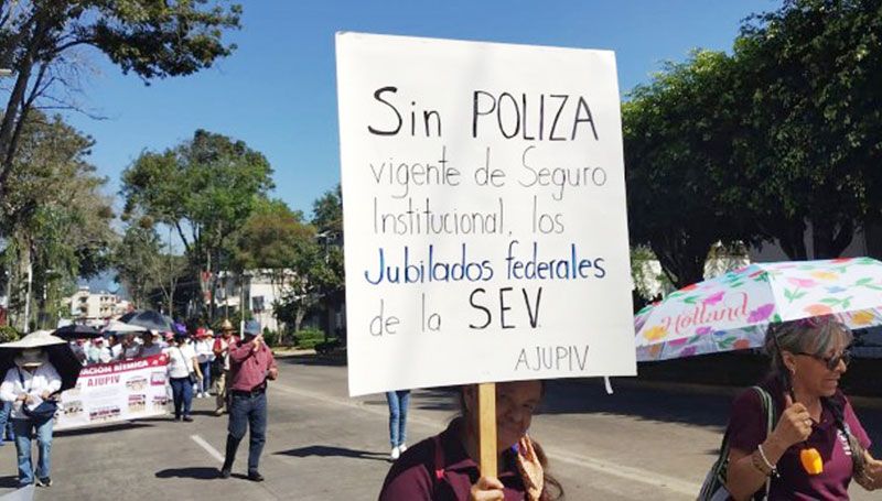 Los y las maestras Pensionados exigieron al gobierno del estado el pago de 2 millones 800 mil pesos por concepto de seguros institucionales que se adeudan desde el año 2012 en la administración del exgobernador Javier Duarte de Ochoa.