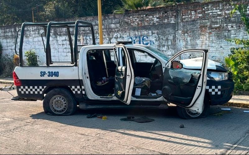 La confrontación derivó en daños a una patrulla de la Secretaría de Seguridad Pública, identificada con el número SP-3040, con afectaciones en la carrocería y neumáticos.