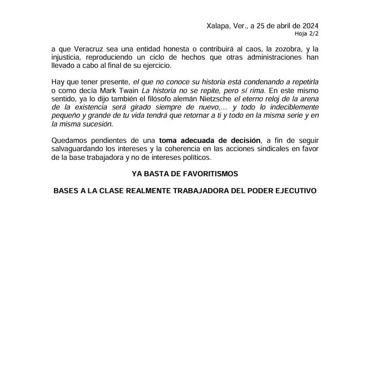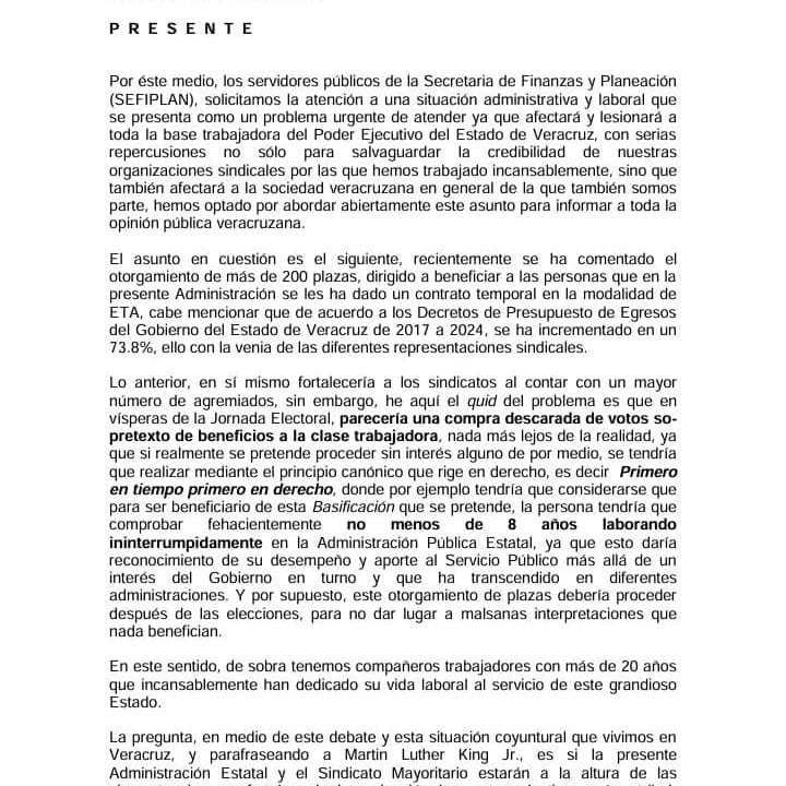 Esto, luego que un listado de funcionarios públicos de la Legislatura de Veracruz recibirían bases de sus puestos en dicha soberanía, entre estas, supuestas “edecanes” del equipo del Presidente de la Junta de Coordinación Política.